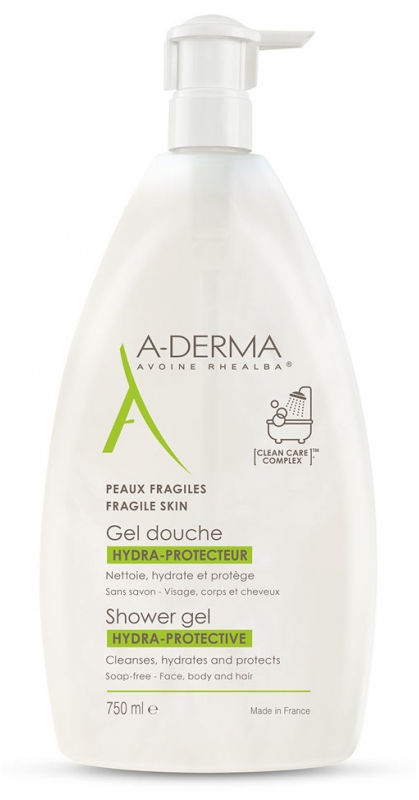 Aderma Gel Douche Hydra-Protecteur 200 ml est un gel douche conçu pour nettoyer, hydrater et protéger les peaux fragiles.Ce gel douche avec base lavante douce, sans savon, et au complexe Clean Care (agent compensateur), convient au visage, au corps et aux cheveux.pH physiologique. Testé sous contrôle dermato-pédiatrique, formule biodégradable.