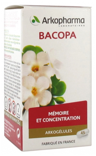 Extrait de feuille de Bacopa (Bacopa monnieri (L.) Pennell).Agent de charge : cellulose.Bicarbonate de potassium.Antiagglomérants : mono et di glycérides d’acides gras, dioxyde de silicium.Enveloppe d’origine végétale : hydroxypropylméthylcellulose.Informations nutritionnelles moyennes Pour 1 gélulePour 4 gélulesExtrait de feuille de bacopa200 mg800 mg