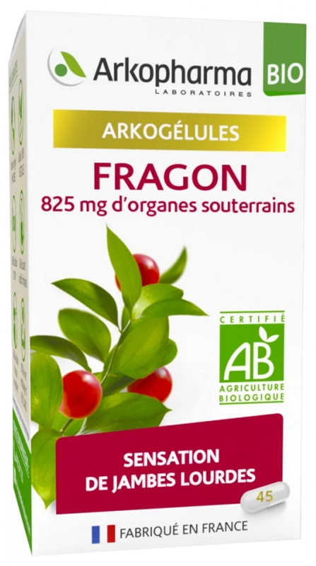 Arkogélules® Fragon est un complément alimentaire spécialement formulé pour aider à diminuer la sensation de jambes lourdes.Grâce à son savoir-faire unique, Arkopharma restitue 100 % des actifs du Fragon, qui agissent en synergie dans le plus grand respect de votre corps.