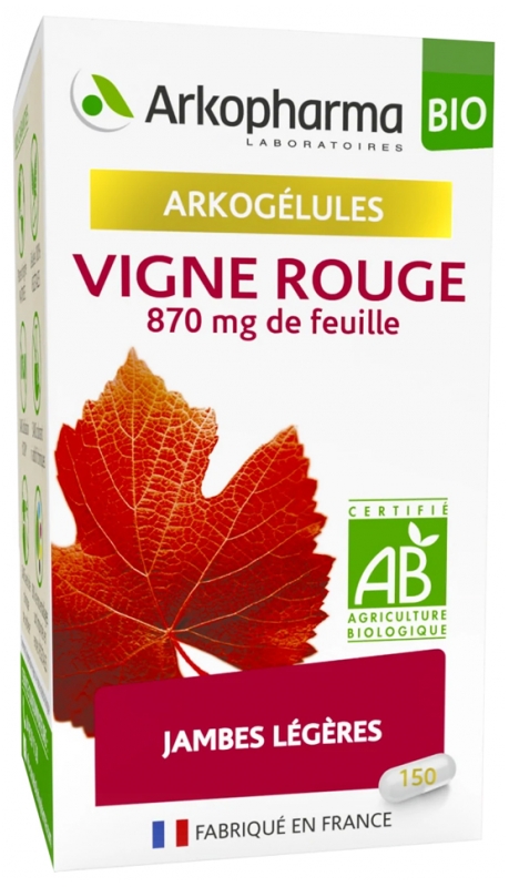 Arkogélules® Vigne rouge est un complément alimentaire spécialement formulé pour les personnes souhaitant retrouver des jambes légères.Grâce à son savoir-faire unique, Arkopharma restitue 100 % des actifs de la Vigne rouge, qui agissent en synergie dans le plus grand respect de votre corps.