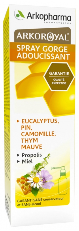 Stabilisants : maltitol et glycérol – Extrait de plantes [obtenu à partir de : 2,3 mg de bourgeon de pin (Pinus sylvestris L.), 2,3 mg de feuille d’eucalyptus (Eucalyptus globulus Labill.), 1,4 mg de fleur de matricaire (Matricaria chamomilla L.), 0,9 mg de feuille de thym (Thymus vulgaris L.) et 0,1 mg de feuille de mauve (Malva sylvestris L.) mis en œuvre pour une pulvérisation] – Miel – Sucre – Extrait de propolis [obtenu à partir de 1,6 mg de propolis mis en œuvre pour une pulvérisation.] – Arôme naturel de menthe – Acidifiant : acide citrique – Conservateurs : sorbate de potassium et benzoate de sodium.Information nutritionnelle moyenne Pour 2 pulvérisationsPour 4 pulvérisationsPour 6 pulvérisationsExtrait de plantes91,8 mg184 mg275 mgMiel29,1 mg58,3 mg87,4 mgExtrait de Propolis8,28 mg16,6 mg24,8 mg