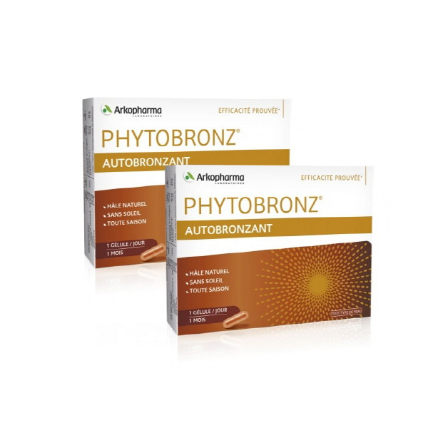 Avec PHYTOBRONZ® rayonnez tout l’été !Hâle naturel SANS SOLEIL EFFICACITÉ PROUVÉE**Phytobronz® Autobronzant est formulé à base de caroténoïdes, vitamine E, sélénium et hydrolysat de collagène. Il contribue à activer le hâle naturel sans exposition au soleil**.  Activateur de bonne mine, il vous procure également un teint éclatant et lumineux en toute saison.La vitamine A contribue au maintien d’une peau en bonne santé.Le sélénium et la vitamine E sont des anti-oxydants qui aident à protéger les cellules contre le stress oxydatif.*Quintiles IMS-Pharmatrend-Marché des compléments alimentaires solaires en pharmacie et parapharmacie - CUF Sept.2016 - en volume** Étude clinique réalisée sur 50 personnes pendant 30 jours.