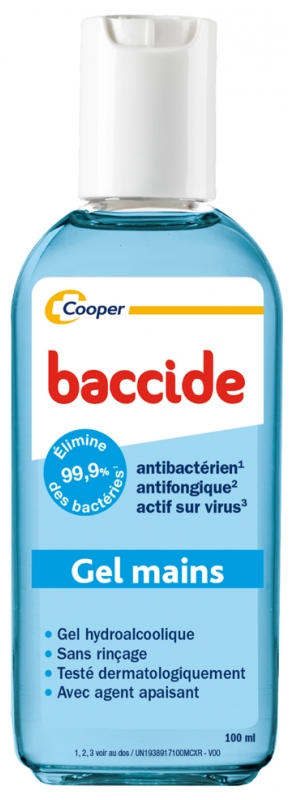 Ethanol 70.0 % (m/m) (CAS N°64-17-5). Biocide TP1. Agent apaisant : bisabolol.