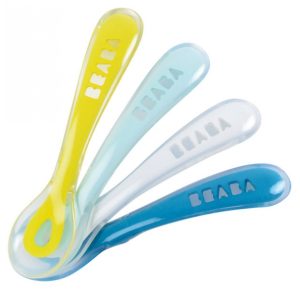 Lot de 4 Cuillères ergonomiques d’apprentissage 1er âge.Embout silicone ultra souple : Spécialement conçu pour la transition tétine/cuillère.Longueur du manche adaptée à tous les types de pots.• Manche long et ergonomique : Conçu pour une main d’adulte.• Embout et enveloppe intégrale en silicone : Nettoyage facilité.• Cuillère souple : Pas de risques de blessure des gencives.Entretien : Lavage à la main ou lave-vaisselle.