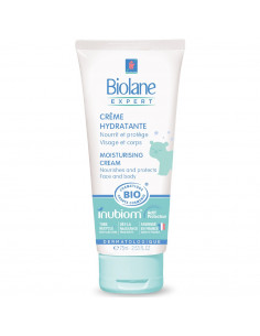 Nourrit et protège la peau sensible du bébé.Résultat : La peau du bébé est hydratée et apaisée dès la première application.Certifiée biologique, cette Crème Hydratante au parfum doux et délicat, est garantie haute tolérance. Sa formule à l’Inubiom®, actif d’origine végétale, participe à l’équilibre cutané du bébé.Nos engagements : une formule à 99% d’origine naturelle, enrichie en beurre de karité et conditionnée dans un emballage composé de 55% de matières recyclées.Formulée pour minimiser les risques d’allergie.Testée sous contrôle pédiatrique.