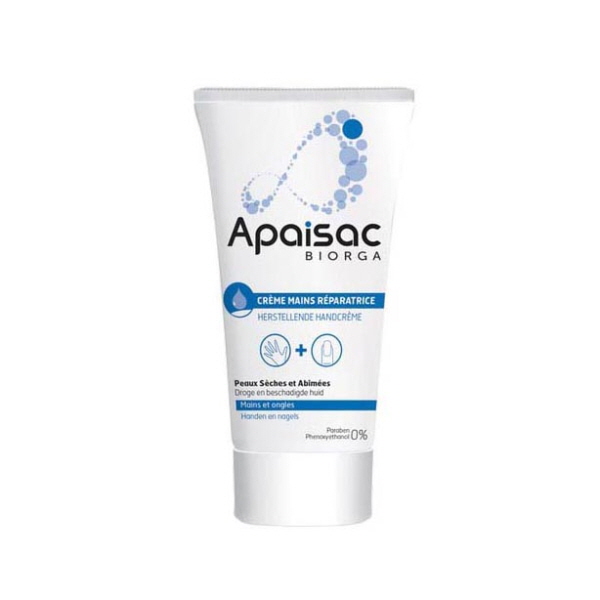 La crème mains réparatrice Apaisac Biorga, protège et restaure la barrière cutanée des mains sur-sollicitées, abîmées par les agressions.RÉPAREFormule riche en Niacinamide 2% qui répare l’épiderme et restaure la barrière cutanée des mains abîméesNOURRITLe Beurre de Karité, agent nourrissant, rend, jour après jour, les mains plus doucesHYDRATEL’acide Hyaluronique , extra-pur, est hautement hydratantPROTÈGELa crème procure un confort optimal en restaurant le film hydrolipidique tout en protégeant durablement la peau Composition :AQUA (WATER), HELIANTHUS ANNUUS (SUNFLOWER) SEED OIL, GLYCERIN, GLYCERYL STEARATE SE, ISONONYL ISONONANOATE, CAPRYLIC/CAPRIC TRIGLYCERIDE, BUTYROSPERMUM PARKII (SHEA) BUTTER, CETYL ALCOHOL, SODIUM POLYACRYLATE, PARFUM (FRAGRANCE), NIACINAMIDE, POTASSIUM CETYL PHOSPHATE, CHLORPHENESIN, DISODIUM EDTA, O-CYMEN-5-OL, SODIUM DEHYDROACETATE, SODIUM HYALURONATE, CHLORHEXIDINE DIGLUCONATE, TOCOPHEROL, PANCRATIUM MARITIMUM EXTRACT