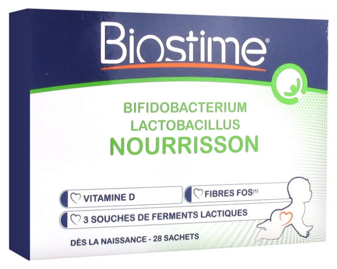 1 sachet de ferments lactiques BIOSTIME par jour, à diluer dans une petite quantité de compote ou de boisson froide ou tiède.