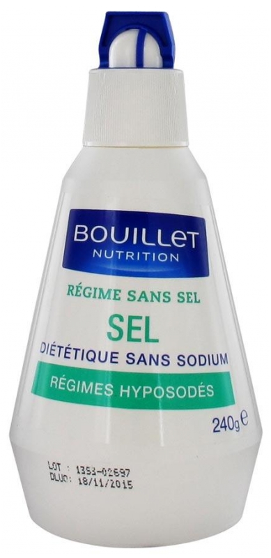 chlorure de potassium ; exhausteurs de goût : glutamate de calcium et acide glutamique ; acidifiant : acide adipique ; antiagglomérant : carbonate de magnésium.Fabriqué dans un atelier qui utilise du lait, des fruits à coque et du poisson.Analyse pour 100g : Valeur énergétique : 31 Kcal, protides : 7.5g, Lipides : 0.1g, Glucides : 0.1g, Magnésium : 0.5g, Calcium : 1.4g, Potassium : 40g