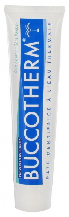 BUCCOTHERM Prévention Caries est le dentifrice quotidien de l’adulte. Nettoie, reminéralise les dents et procure une haleine fraîche. Son action: -Aide à lutter contre la plaque dentaire et favorise la prévention des caries par son dosage renforcé en fluor (1100 ppm) -Favorise la reminéralisation des dents. -Protège les dents et les muqueuses des attaques acides grâce à au pH basique de l’eau thermale. -Apporte une haleine fraîche durable. A qui convient-il?: Les adultes qui cherchent un soin bucco-dentaire complet à usage quotidien. Pour protéger ses dents des caries.