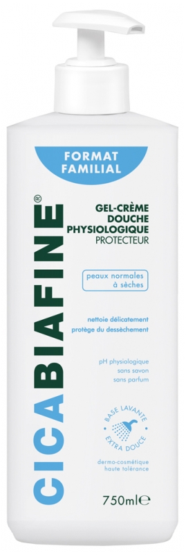 A chaque douche, savon et calcaire peuvent agresser la peau, provoquant sécheresse et inconfort.CicaBiafine Gel-Crème Douche Physiologique 400 ml est un gel-crème qui permet de nettoyer la peau en douceur et la protéger du dessèchement. Formulé sans savon, ce gel-crème au pH physiologique :- nettoie délicatement la peau en respectant sa barrière protectrice,- aide à prévenir la sécheresse cutanée liée aux agressions de la douche,- laisse la peau douce.Sa texture gel-crème se transforme en mousse onctueuse pour un moment de réconfort.pH physiologique, sans savon, sans parfum. Formule haute tolérance.