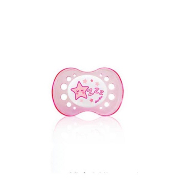 Convient aux bébés de plus de 18 mois. Conçue pour la nuit, le bouton phosphorescent permet de retrouver facilement la sucette. Bouclier en tritan, confortable et léger qui permet à bébé de la garder en bouche facilement. Téterelle en silicone de forme anatomique (ou symétrique), réversible, reste toujours bien positionnée dans la bouche de bébé. Dotée de nervures qui renforcent sa résistance, cette sucette est idéale à l’arrivée des premières dents. Les trous de ventilation permettent une meilleure circulation de l’air et réduisent ainsi le risque d’irritation de la peau de bébé.