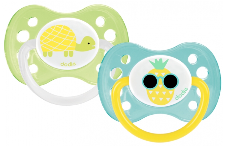 Convient aux bébés de plus de 6 mois.Bouclier en tritan, confortable et léger qui permet à bébé de la garder en bouche facilement.Téterelle en silicone de forme anatomique (ou symétrique), réversible, reste toujours bien positionnée dans la bouche de bébé. La finesse de la téterelle respecte le développement naturel de la bouche de bébé.Les trous de ventilation permettent une meilleure circulation de l’air et réduisent ainsi le risque d’irritation de la peau de bébé.Le système du bouton-anneau permet un retrait facile et sécurisé de la sucette.Lot de deux sucettes.