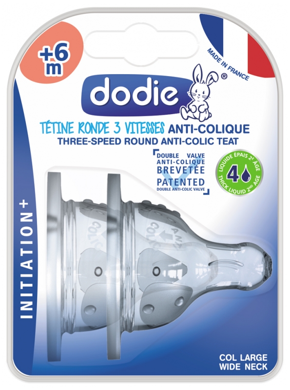 Dodie Tétines Rondes Initiation+ 6m+ Débit 4 Liquide Epais x2