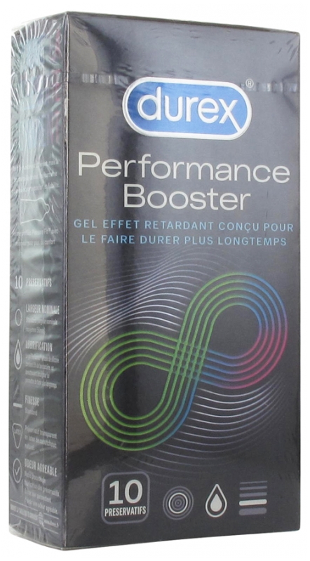 Les préservatifs Performance Booster du laboratoire Durex permettent de faire durer le plaisir encore plus longtemps grâce à leur effet retardant.diamètre de 56mm forme profilée pleasure-fit avec réservoir fabriqués en latex de caoutchouc naturelCes préservatifs sont lubrifiés pour un maximum de confort pour lui comme pour elle. Ils contiennent également une bille de benzocaïne située dans le réservoir pour prolonger la durée du rapport.Les résultats sont à la hauteur des attentes. Essayez-le !