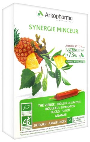 Anti-agglomérants : phosphate dicalcique, phosphate tricalcique, stéarate de magnésium ; extrait de thé vert ; poudre de ginseng ; choline bitartrate ; extrait de griffonia ; gluconate de zinc ; extrait d’éleuthérocoque ; vitamine C ; extrait de garcinia ; extrait de café vert ; extrait de poivre noir ; extrait de guarana ; extrait de maté vert ; extrait de gymnéma ; inositol ; extrait de laminaire ; poudre de bouleau ; extrait d’alfalfa ; vitamine B3 ; vitamine B8 ; chlorure de chrome ; citrate de manganèse.