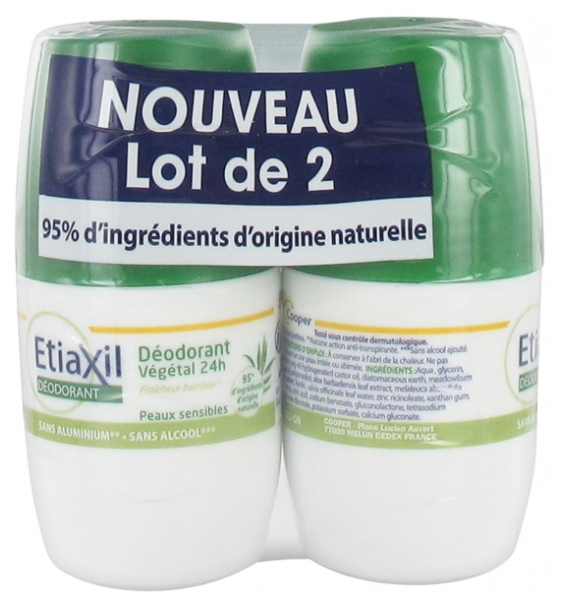 Etiaxil Déodorant Végétal 24h Peaux Sensibles Roll-On 2x50ml