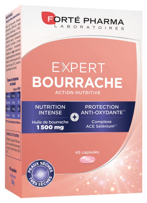 huile de bourrache (Borago officinalis L.) (20% GLA - Acidegamma-linolénique) (1500), agents d’enrobage (gélatine, cire d’abeille jaune), humectant (glycérol), vitamine C (acideL-ascorbique), émulsifian t(lécithine de soja), vitamine E (d-alpha tocophérol), sélénite desodium, colorants (oxydes de fer jaune et rouge, E171), vitamine A (palmitate de rétinol).