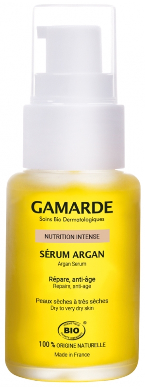 Nettoyer votre peau à l’aide du Lait Nettoyant Douceur et de la Lotion Apaisante Douceur, Appliquer le Sérum Argan Nutrition Intense sur le visage, le cou et le décolleté.
