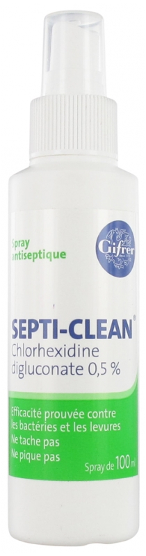 Digluconate de chlorhexidine (CAS 18472-51-0) 0,5% 0,5 g/100 g, eau, excipients q.s.p. 100%.