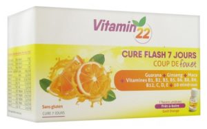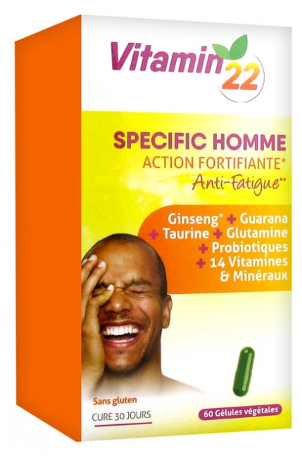 citrate de potassium, gélule végétale (HPMC, colorants : dioxyde de titane, oxyde de fer jaune), acide ascorbique (vitamine C), poudre de racine de ginseng rouge, extrait de guarana, taurine, L-glutamine, vitamine E acétate, agent de charge : maltodextrine, citrate de zinc, émulsifiant : stéarate de magnésium, ferments lactiques microencapsulés (Lactobacillus rhamnosus, Lactobacillus acidophilus ; supports : amidon de maïs, tréhalose, maltodextrine, poudre de lait, lactosérum, lactose, gomme xanthane), bétacarotène (supports : alginate, gomme arabique, amidon de pois), levure au sélénium, nicotinamide (vitamine B3), chlorure de chrome (support : maltodextrine), panthothénate de calcium (vitamine B5), gluconate de cuivre, biotine (vitamine B8, support : maltodextrine), antiagglomérant : silice, chlorhydrate de thiamine (vitamine B1), riboflavine (vitamine B2), molybdate de sodium. Peut contenir des traces de blé (gluten).Informations nutritionnelles moyennes pour 2 gélules :Probiotiques microencapsulés 2 milliards de(Lactobacillus rhamnosus, ferments vivantsLactobacillus acidophilus )Guarana (Paullinia cupana) 50 mgDont Caféine 1.5 mgGinseng rouge (Panax ginseng CA Meyer) 50 mgDont Ginsénosides 0.2 mgTaurine 50 mgL-glutamine 50 mgProVitamine A (Bétacarotène) 800 mcg*Vitamine C 80 mg*Vitamine E 12 mg*Vitamine B1 1.1 mg*Vitamine B2 1.4 mg*Vitamine B3 16 mg*Vitamine B5 6 mg*Vitamine B8 50 mcg*Potassium 80 mg (4% AR)Cuivre 1 mg*Chrome 25 mcg (62.5% AR)Molybdène 50 mcg*Sélénium 50 mcg (90.9% AR)Zinc 10 mg*AR : Apports de Référence