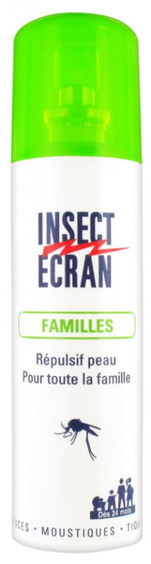 Insect Ecran Familles est un produit répulsif à appliquer sur la peau. Il vous protégera des piqûres de moustiques pendant 6 heures.Formulé à base d’Icaridine à 20%, ce répulsif a été conçu pour protéger tous les consommateurs dès 24 mois dans les zones où les moustiques ne sont pas vecteurs de maladies mais source de nuisance.Compter 1 flacon de 100ml pour 20 jours, à raison de 2 applications par jour.