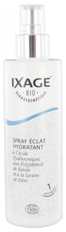 IxAge Bio Spray Éclat est prescrit comme un mini lift immédiat avec effet tenseur et stimulant, après photo rajeunissement (anti-inflammatoire) traitement laser - après injection et mésothérapie (diminue les hématomes) - épilation laser.Pour les peaux normales à sèches.LES PRINCIPES ACTIFSLEVURE DE BIÈRE (2)Éclat du teint, énergisant de la peauRACINES DE GUIMAUVE, DE REGLISSE ET SON DE RIZRéduisent les tâches brunes et éclaircissent le teintPOLYPHÉNOLS DE RAISINAnti-oxydantACIDE HYALURONIQUE (1) (2)HydratantANOGEISSUS (2)Ralentit la dégradation du Collagène (1) : actifs brevetés (2) : actifs testés efficaces