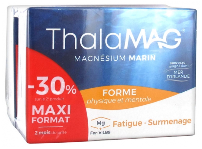 gélule : gélatine de poissons bleus ; Hydroxyde de magnésium ; Gluconate de fer ; acide folique (vitamine B9) ; Compositionquantité pour 2 gélules% des VNR*Magnésium marin300 mg80%Fer14 mg100%Vitamine B9200 µg100%* VNR : Valeurs Nutritionnelles de Référence